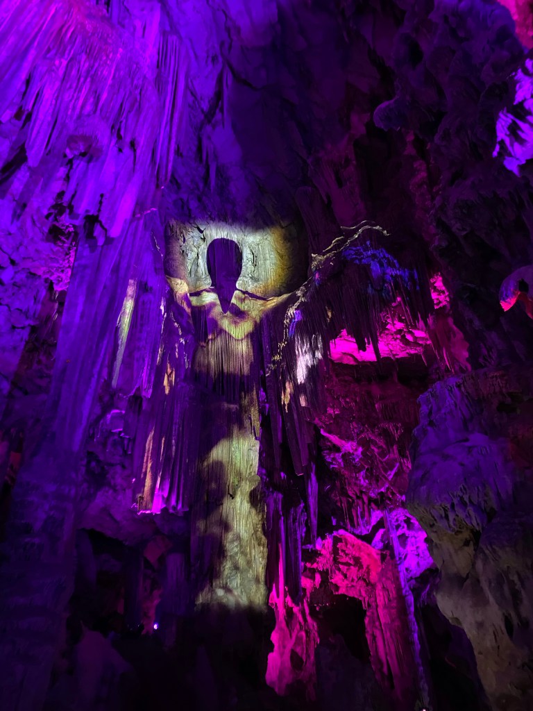 Ved indgangen fandt vi efter noget tid ud af at de guidede ture skulle man vente på ved indgangen nedenfor. Tiderne uden guide er ved den øvre indgang. Kontrollørerne råber klokkeslet op, mest på spansk, men overgiver sig ind imellem når for mange folk ser fortabte ud, og råber det så på engelsk også. Alle får udleveret en obligatorisk hjelm samt hårnet, og de guidede ture får også et radio-headset så man kan høre guiden. Vores guide på turen var englænder og dermed også meget let at forstå. Hun fortalte mange spændede historier og fakta undervejs, og huskede os også på en gang imellem at kigge os tilbage, eller op eller ned.