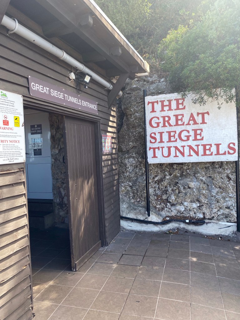 Store belejringstunneler (The Great Siege Tunnels) var utrolig spændende at se. Kæmpe lange tunneler, rum og depoter inde i klipperne. Inde fra klippen har man kunnet opbevare ammunition, flytte våben fra den ene side af klippen til den anden, holde udkig og de de mange kanonstillinger har været et godt forsvar. Vi så også WWII tunnelerne, de var desværre ikke særlig oplyst da vi var der, der var flere rum hvor der ikke var lys, og da de var spærret af med tov, fik vi ikke så meget ud af det. Men det er ret fantastisk at der under 2. verdenskrig i denne “underjordiske by” kunne huses hele 16.000 stærke garnisoner, sammen med mad nok til 16 måneder. Et imponerende tunnelnetværk på ca. 55 kilometer er der inde i Gibraltarklippen. Der er også en udstilling, by under belejring (City Under Siege Exhibition), men den så vi ikke. Vi så til gengæld et par af fæstningsanlægene (Battery), O’Hara’s og Princess Caroline’s og det militære kulturarvscenter (Military Heritage Centre), hvilket også var spændende at se.