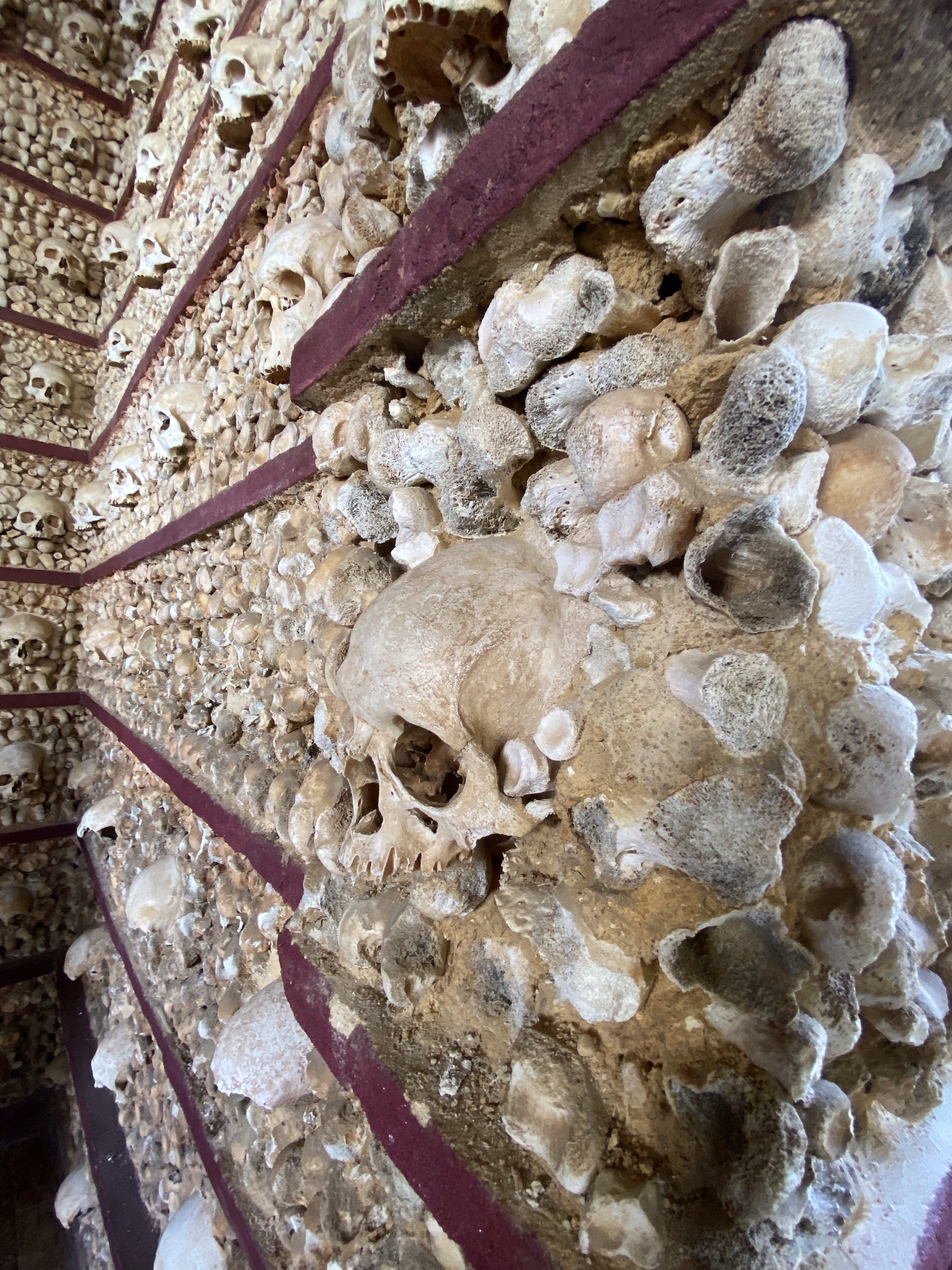 En regnvejrsdag tog vi til Capela dos Ossos (Chapel of Bones) i Faro, det er en noget speciel men sjov oplevelse på den lidt morbide måde. Det er et lille kapel som er dekoreret med knogler og kranier i geometriske mønstre.