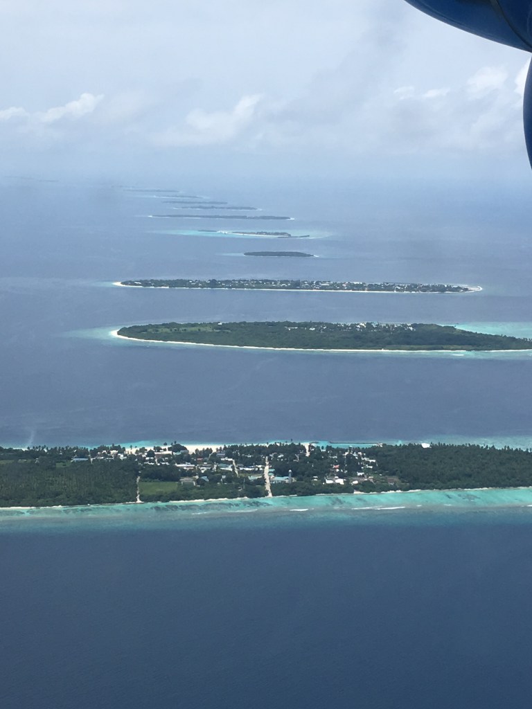 Maldiverne er en øgruppe i Det indiske hav og består af 1190 småøer beliggende på 26 atoller. Heraf er ca. 2-300 øer beboede og ca 110 er lavet til hotel resorts. Der er langt til Maldiverne, det tager gerne omkring 12-17 timer, med skift undervejs, og da vi ankom til Male på Maldiverne var der yderligere 45 min. flyvetid i vandflyver derfra til øen hvor vi skulle bo, Kudafushi. Men det er bestemt den lange rejsetid værd.