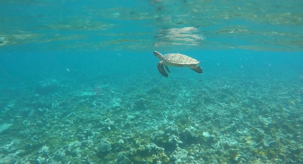 En af grundene til at det blev Kudafushi turen gik til, var fordi man kan snorkle direkte fra øen hvor vi boede, hvilket var helt fantastisk. Alligevel bookede vi en dag en snorkeltur, da jeg havde en drøm om at opleve havskildpadder. Dette var en af de populære ture, og vi blev nogle stykker sejlet ud, hvor der var mulighed for at se skildpadder. Vi var så heldige at få set flere af dem svømme omkring og spise koralerne på havbunden, og en enkelt gang kom en af skildpadderne endda op efter luft ganske tæt på hvor vi var. Helt sikkert en tur jeg aldrig glemmer.