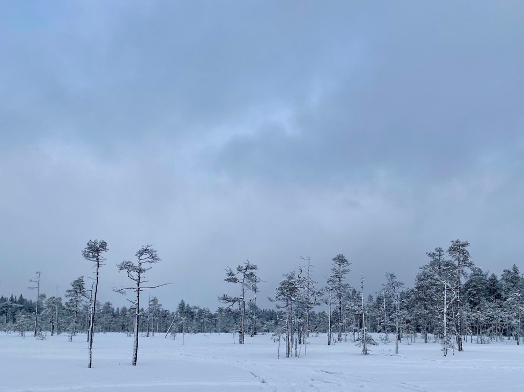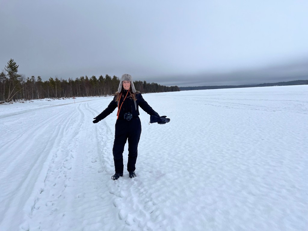 Da vi kom tilbage gik vi en lille tur på omkring 4 km ude på den frosne sø, der lå lige ved resortet. Det var en lækker tur i klart vejr. Vi gik mest i snescooternes præparerede spor. Jeg hyggede mig lidt over at man kan gå på sådan en kæmpe sø, og at når man gik udenfor sporet kunne man synke i sne til knæene i den løse sne, uden at komme i nærheden af vandet.