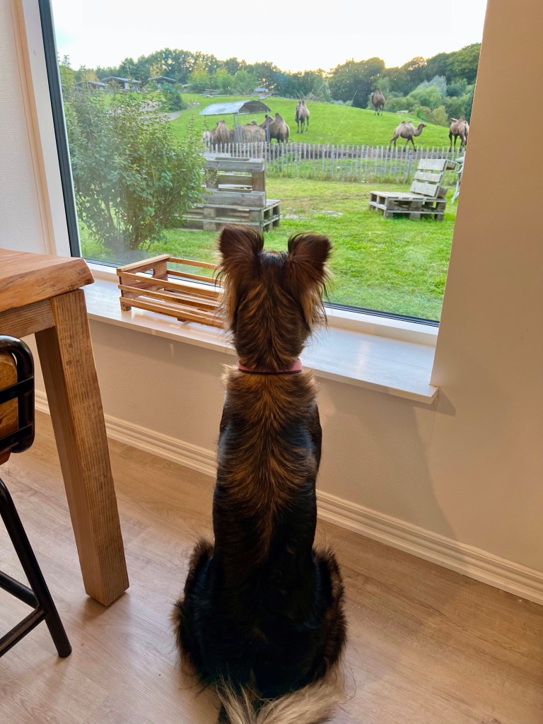 Når man bor i Kamelhuset må man også gerne have hunden med, hvilket vi syntes var dejligt. Hunde må ikke være i parken, men hun fik stadig rigtig meget ud af at være med os på mini ferie. Det kræver selvfølgelig at man har en hund der kan være alene når familien er i parken.