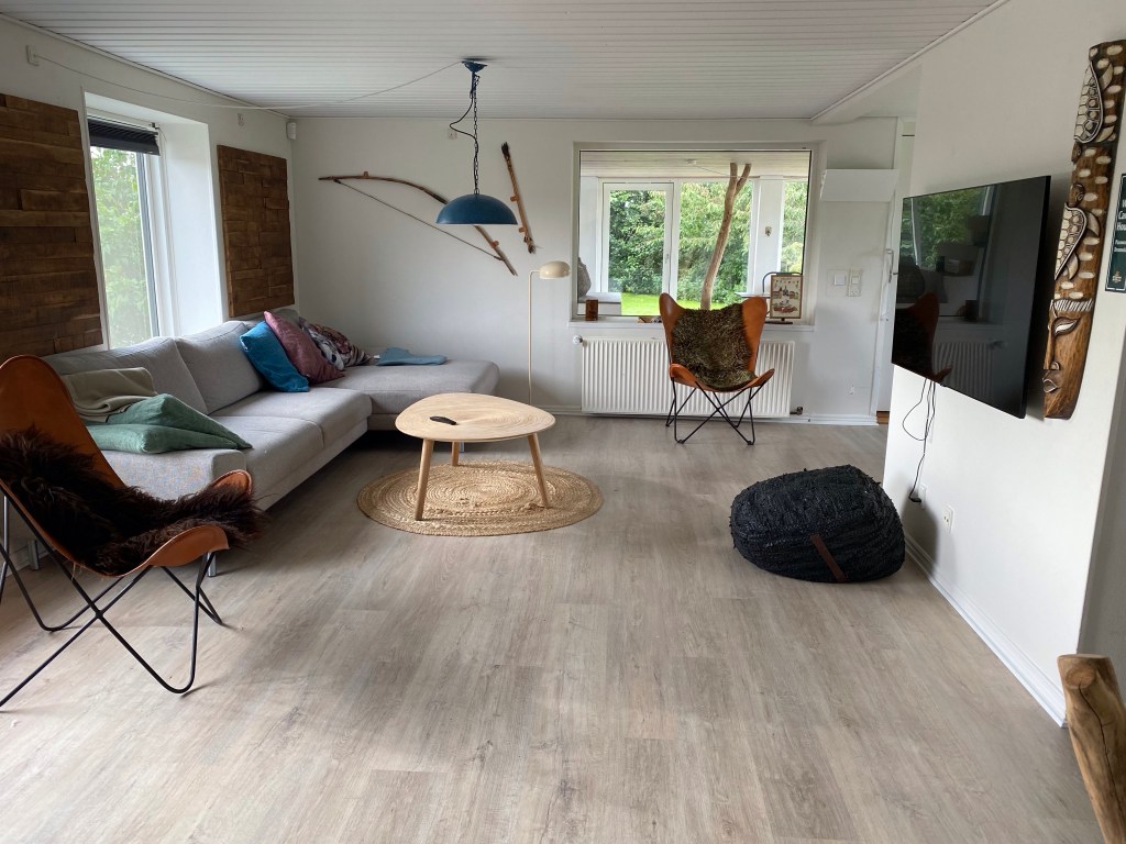 Huset er en fornuftig størrelse, med sovepladser til 7+1 personer, og det er hyggeligt indrettet, i bedste Safari stil. I huset er der 3 soveværelser med 2 sovepladser på hvert værelse, 1 værelse er placeret i stueplan og 2 værelser er placeret på 1. sal. Desuden er der en soveplads på repoet, hvor der også er plads til at der kan sove 1 ekstra på en foldemadras.