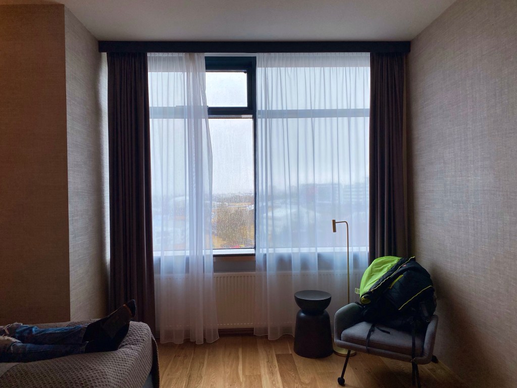 Placering: Vi boede på Hotel Reykjavik Grand under hele vores ophold. Hotellet ligger ca 2 km fra centrum af Reykjavik, så det tager ca. 20 min. at gå derind. Jeg havde hjemmefra læst at der også skulle være en gratis bus til byen et par gange om dagen, men det var ikke noget vi forhørte os om. Vi gik til byen, de par gange vi tog derind. Det virkede som om at hotellet især er attraktivt for folk som har lejet en bil og dermed lettere kan komme rundt, men det fungerede også fint for os som bookede ture med afhentning på hotellet.