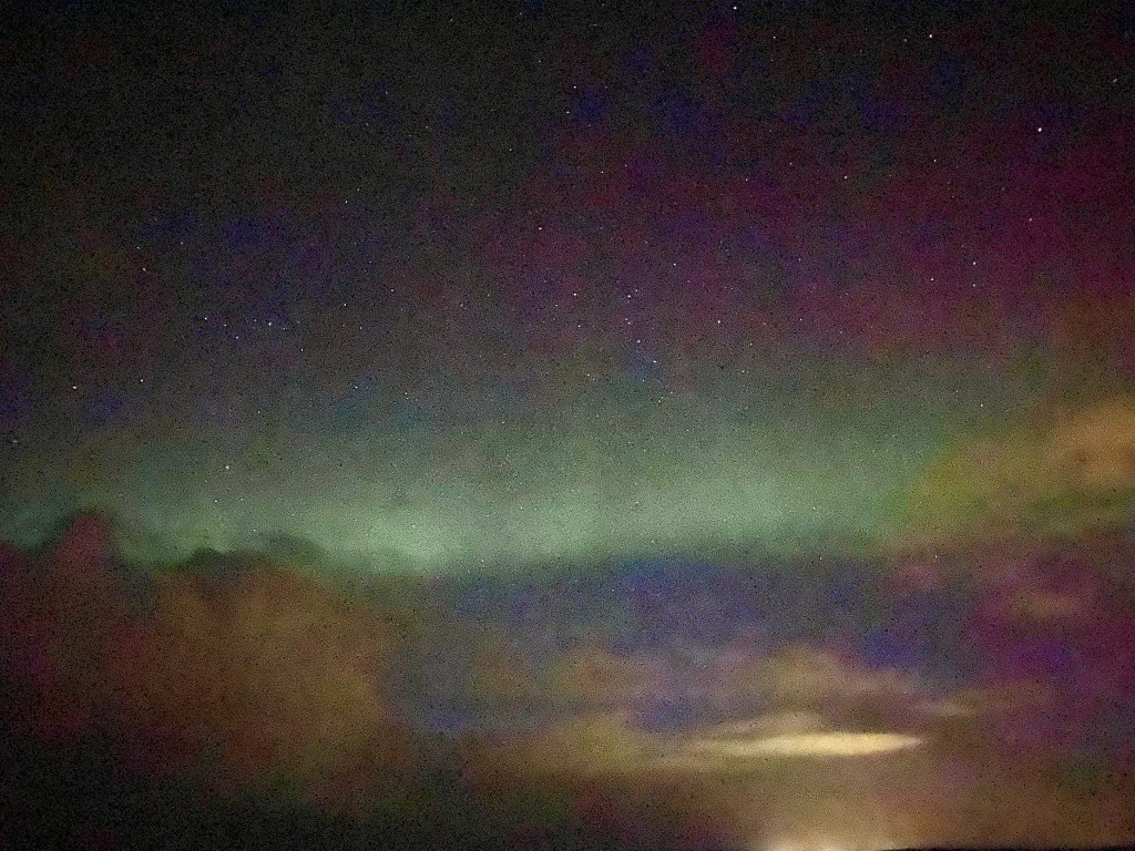 Vi blev hentet og sammen med mange andre busser blev vi kørt ud på en parkeringsplads et godt stykke væk fra byen. Vi fik desværre kun en snært af nordlyset at se, da der kom skyer, så det blev ikke her vi skulle få den oplevelse. Vi havde igen mulighed for at ombooke turen, men for os var det tid for at rejse hjem igen.