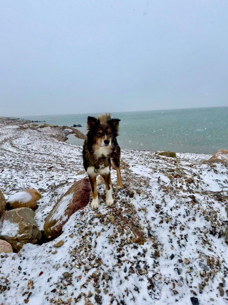 Der er noget helt særligt ved at gå ved Vesterhavet i den slags vejr. Man blev rusket godt igennem mens småregnen piskede os i ansigtet, så vi virkelig kunne mærke naturens kræfter. Vi følte os i live. Sikke en måde at skyde året i gang på.