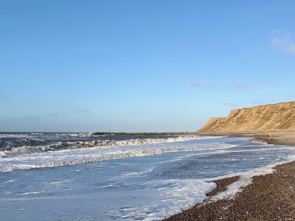 Vi startede turen på toppen af klinten og fulgte kysten hvor udsigten strakte sig så langt øjet rakte. På vejen tilbage gik vi nede langs stranden, hvor vi blev dejligt vindblæste. Præcis som det skal føles når man går langs Vesterhavet.