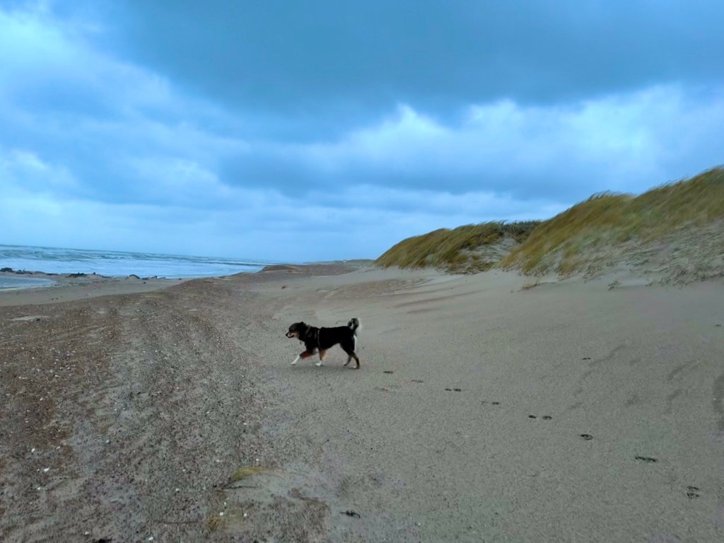 Vi fulgte stien sydpå, og da vi vendte, krydsede vi over mod Vestkysten og tog turen hjem langs stranden. Området viste sig at være virkelig lækkert, og på en dag med pænere vejr var vi helt sikkert gået længere. Denne gang blev det til en tur på lidt over 4 km på en god times tid.
