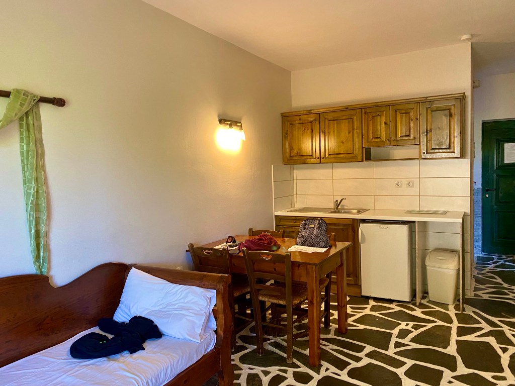 Lejligheden var godt indrettet, og alle i lejligheden havde en seng (ingen sovesofaer), aircondition virkede fint, og dejligt med mørklægningsgardiner. Det ville dog være rart hvis der var det antal stole, som der er personer, og vi kunne godt savne at det havde været glas i lejlighederne. Der er et tomt køkken (hvilket er fint), men da der er køleskab havde det været lækkert med lidt glas.