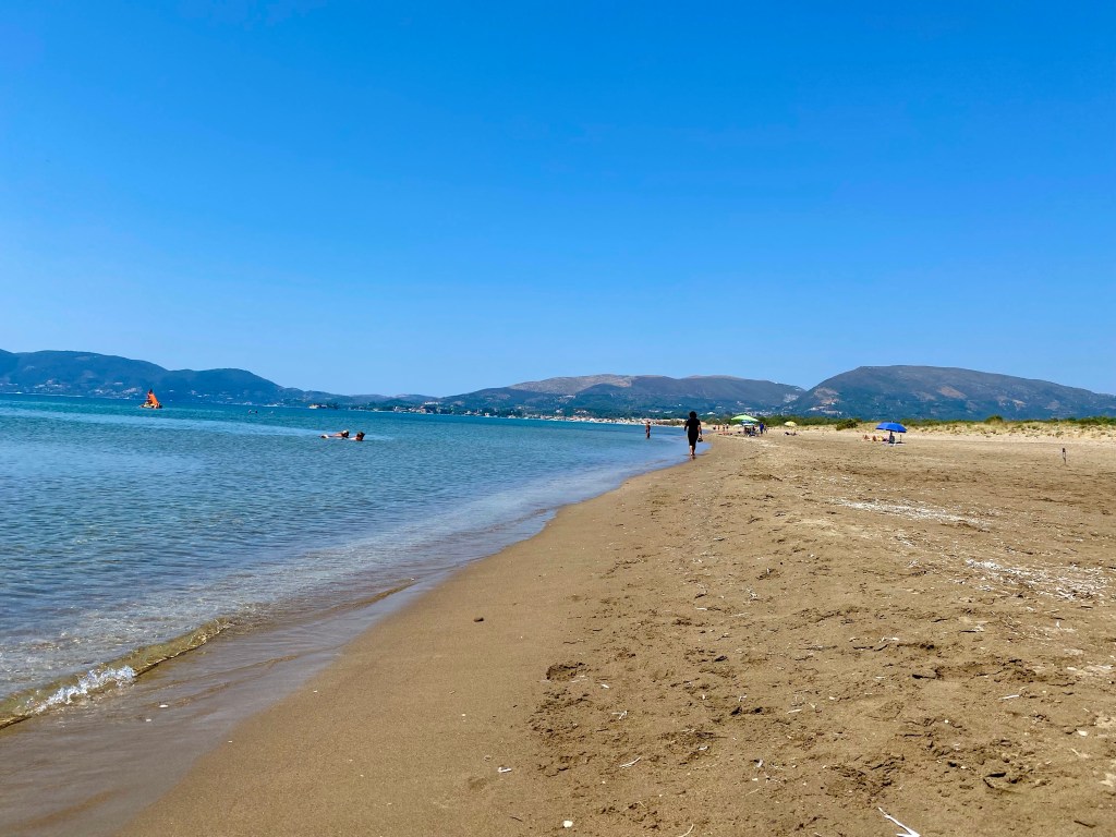 Vi boede tæt på Kalamaki Beach. Det er en rigtig lækker børnevenlig strand med fint sand, ingen sten og lækkert klart vand.