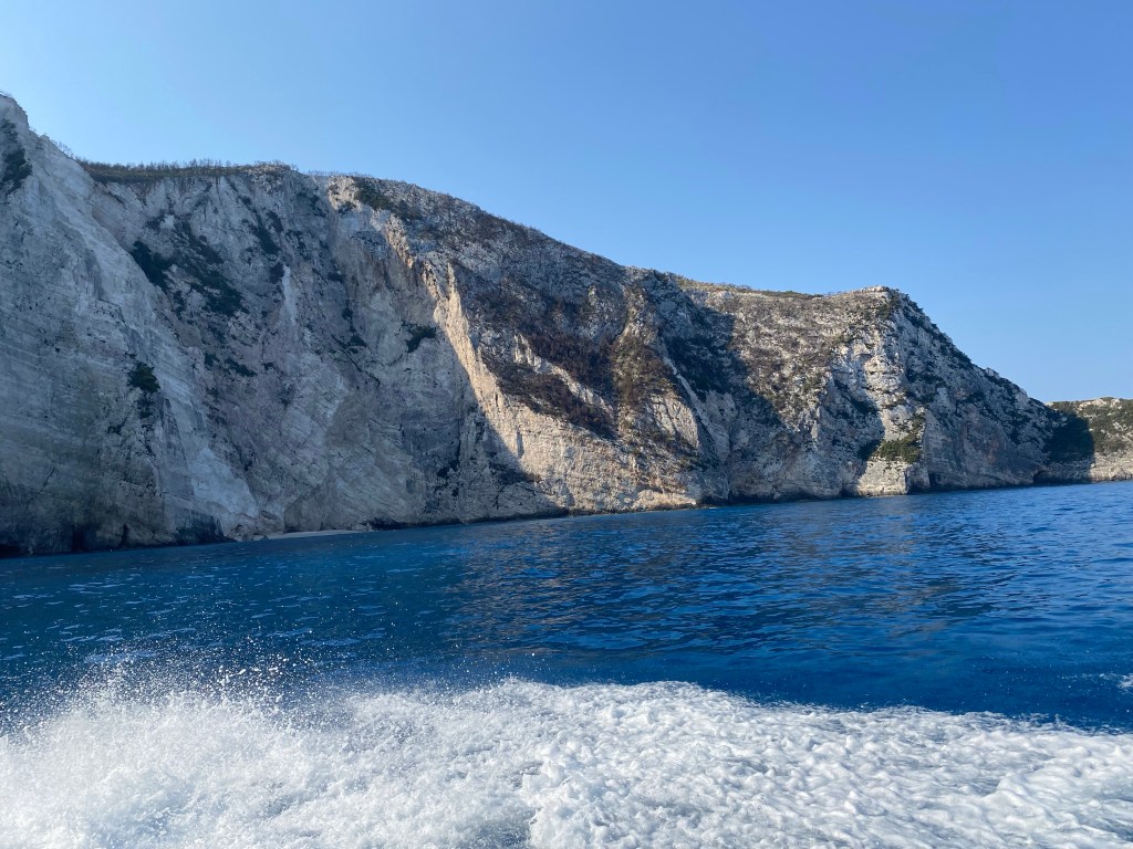 Vi tog på en tur til Shipwreck Bay som var kombineret med Blue caves. Turen var fra Pytheastravel booket gennem Sunweb. Vi blev hentet i bus ved nabohotellet, og turen tog samlet ca 6,5 time.
